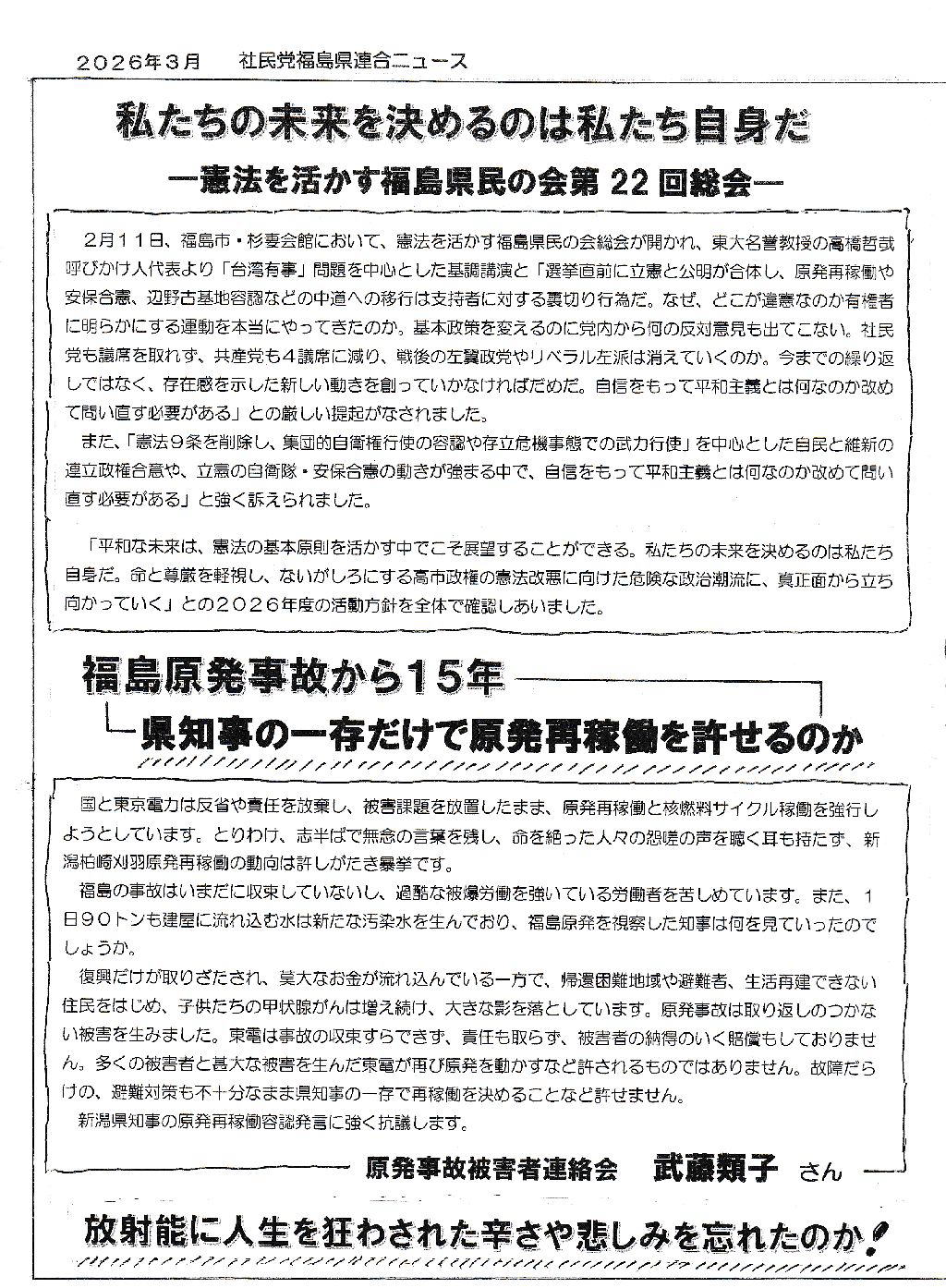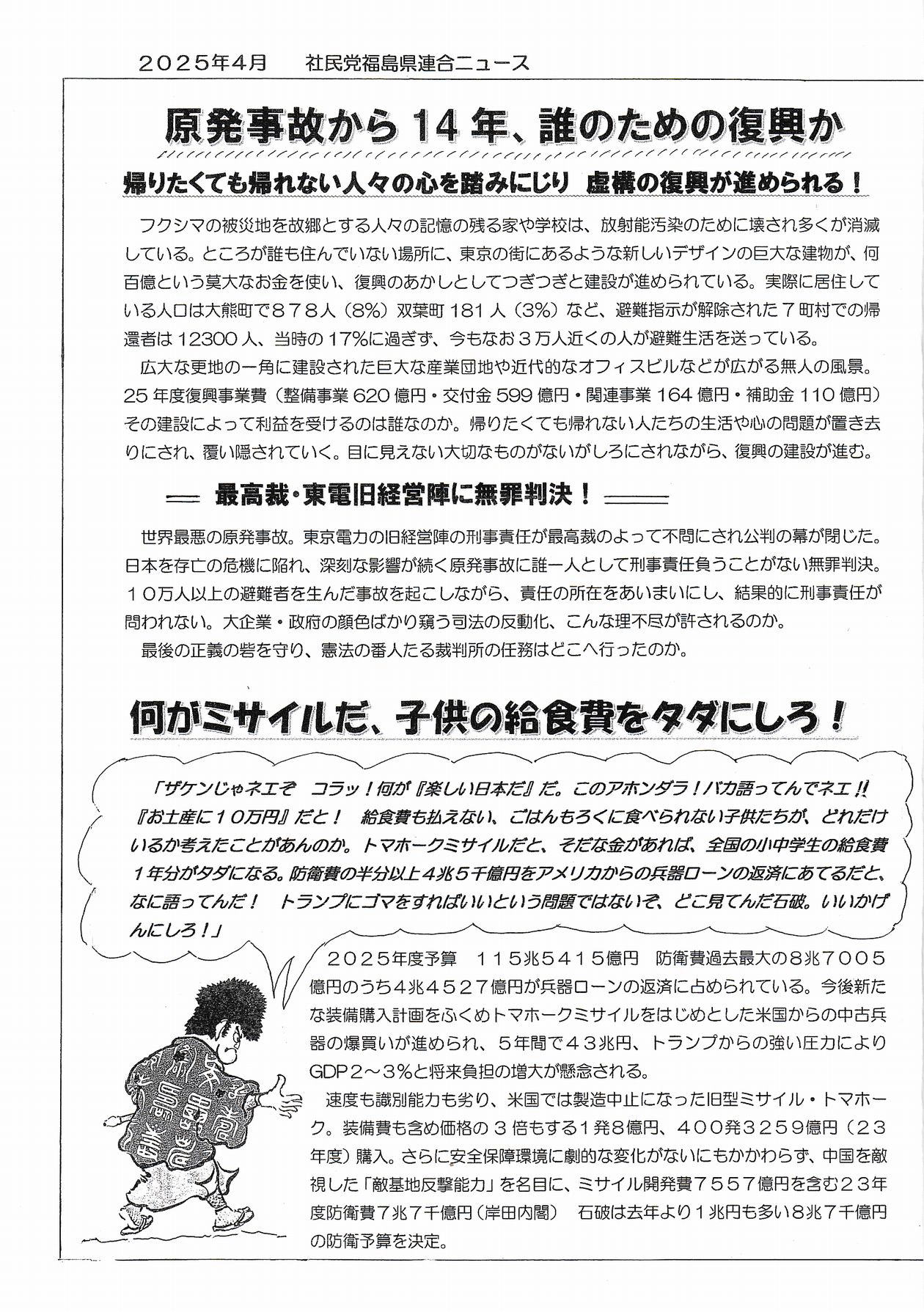 2025年3月号 社民党が今後残れるかどうか 人の心を動かす行動が求められている!![]() ![]() ![]() ![]() |