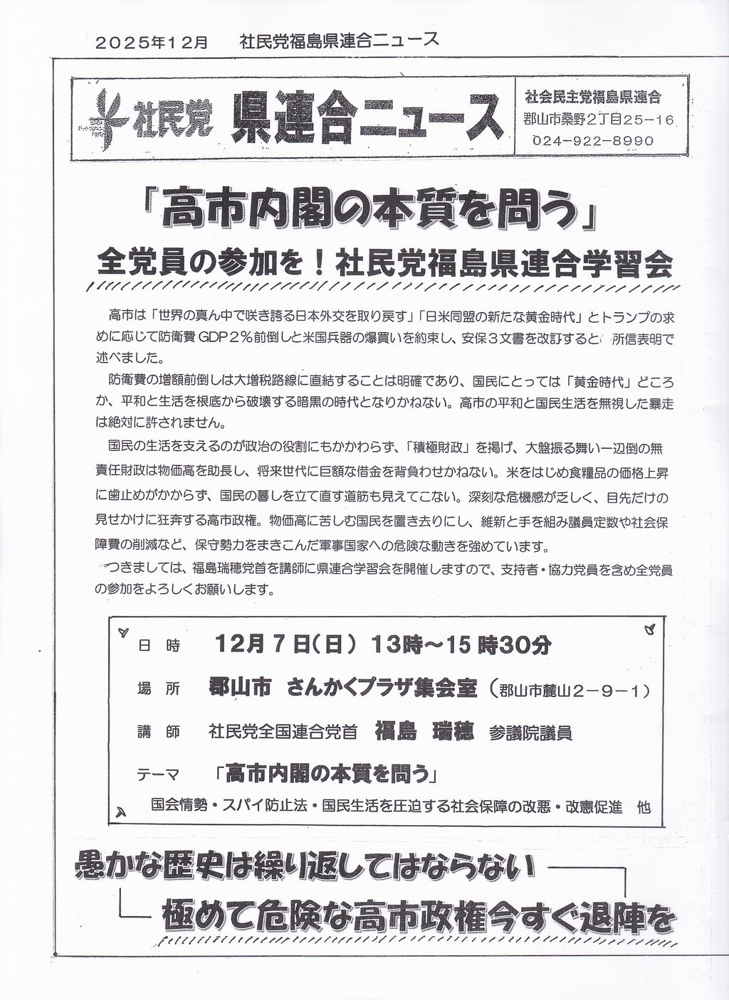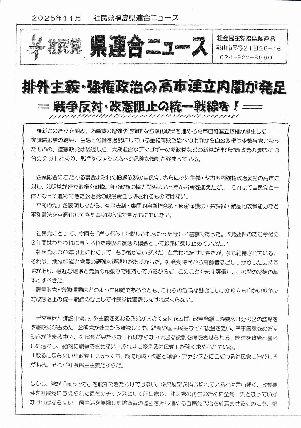 2025年7月号 社民党の必勝を ![]() ![]() ![]() ![]() |
