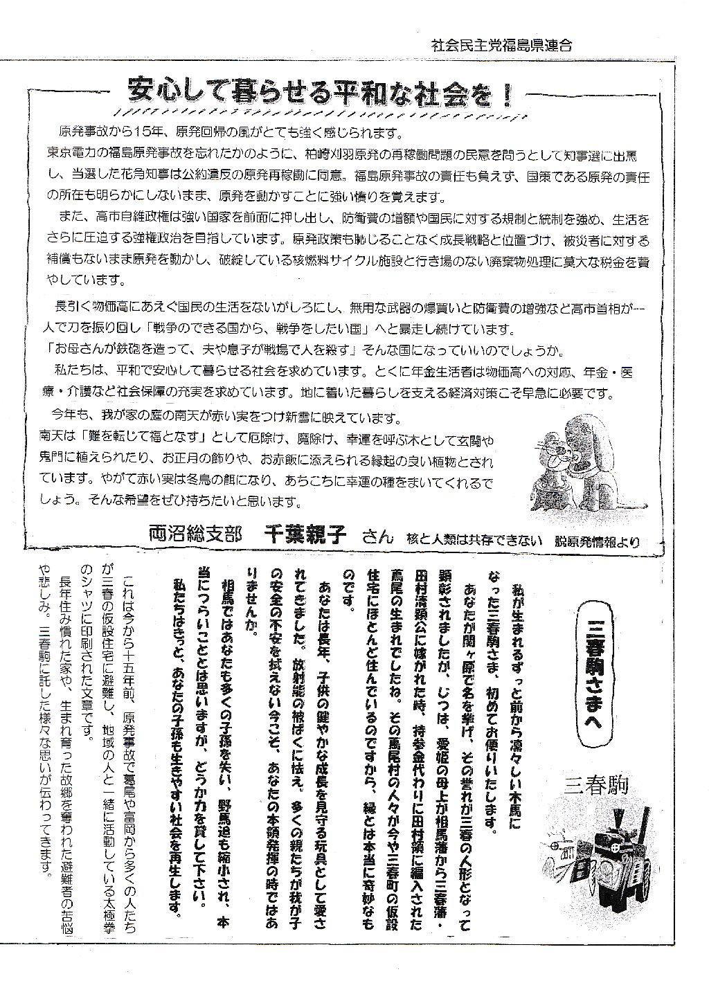 2025年1月号 「政治は希望」今こそ社民党の出番 ![]() ![]() ![]() ![]() |